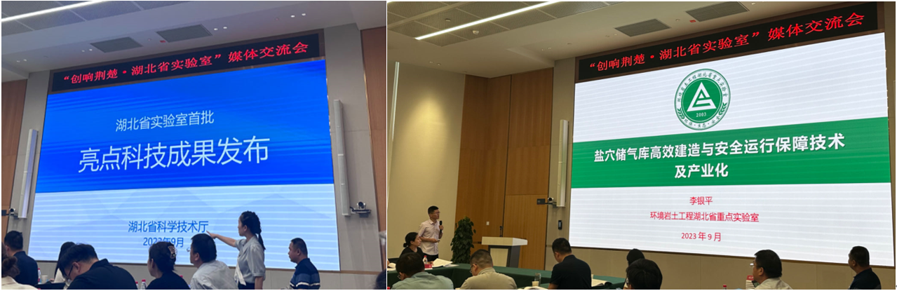 根据评分结果,将入选成果分为“亮点科技成果”“入库培育成果”两个层级。有23项成果获评湖北省实验室首批亮点科技成果,占填报成果数量的5.7%。其中,环境岩土工程湖北省重点实验室的“盐穴储气库高效建造与安全运行保障技术及产业化”成功入选湖北省实验室首批亮点科技成果,并作为代表性成果在媒体交流会上进行了详细介绍。环境岩土工程湖北省重点实验室主任李银平参加了会议,并进行了成果讲解。